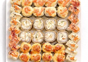 Цена на вынос 1120 рублей- Мини темпура с Форелью - Бурито Запеченный - Темпурно- Запеченный… Открыть составЦена на вынос 1120 рублей- Мини темпура с Форелью - Бурито Запеченный - Темпурно- Запеченный ролл с жареной форелью, сыром, под шапочкой ПикантныйЗакрыть состав